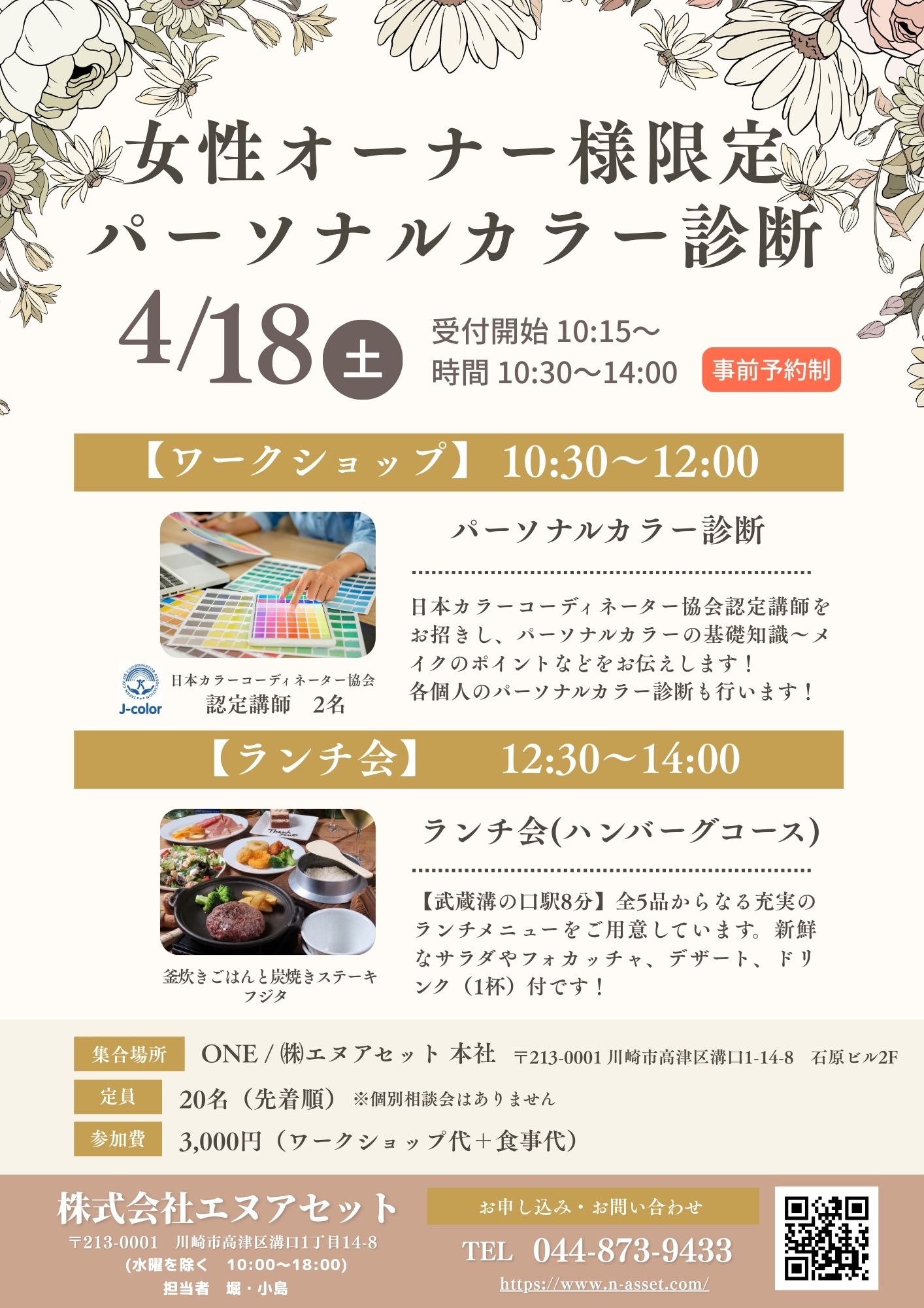 ※当日は日本カラーコーディネート協会認定講師をお招きし、パーソナルカラーの効果を丁寧にお伝えします。